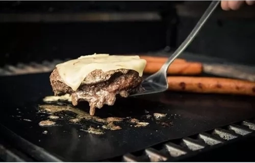 De mat voorkomt aanbranden en doorvallen van ingrediënten, zodat vlees, vis en groenten sappig blijven en de grill en oven schoon.