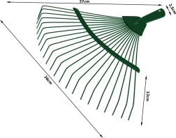 Praktische waaierhark met een ruime werkbreedte van 36 cm die het dagelijks onderhoud van gazon en tuin vergemakkelijkt. Gelakt metaal garandeert een lange levensduur en weersbestendigheid, terwijl het lage gewicht comfortabel werken mogelijk maakt, ook bij langdurig gebruik.