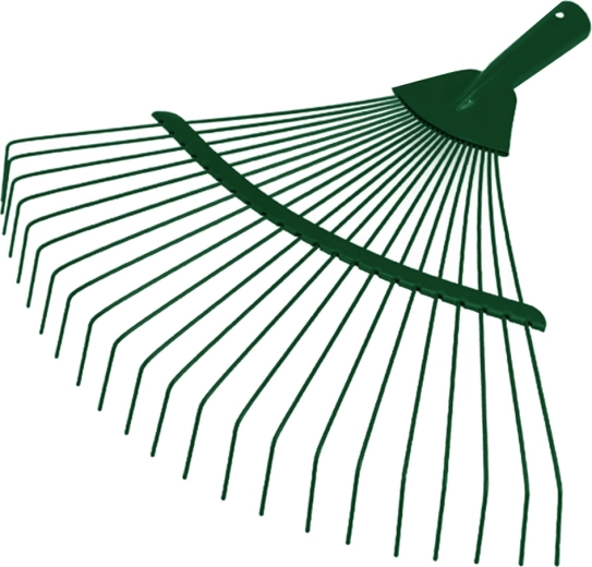 Veerkrachtige draadtanden in waaiervorm vangen betrouwbaar bladeren, naalden en klein vuil op het gazon.