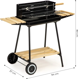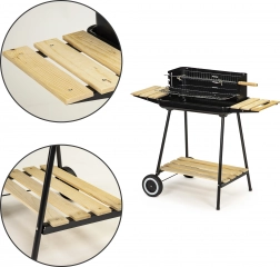 Met zijn stabiele metalen constructie, verstelbare roosterhoogte en praktische planken is het een ideale metgezel voor barbecueën. Het is voorzien van een handgreep en wielen voor gemakkelijk verplaatsen, zelfs wanneer de barbecue warm is.