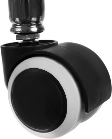 Rubberen (natuurrubber) wielen zijn vloervriendelijk en zorgen voor een stille en soepele beweging zonder vloermatten. Er is ook een voetsteunring inbegrepen, die het comfort bij langere werkzaamheden verhoogt. De montage duurt slechts enkele minuten - de benodigde sleutel zit in de verpakking.