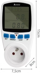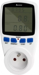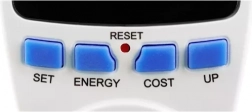 De veiligheid wordt gewaarborgd door een overbelastingsalarm met een instelbare drempel voor het maximale vermogen. De bediening is snel en intuïtief dankzij slechts vier knoppen (SET, ENERGY, COST, UP). Steek hem in het stopcontact, sluit het apparaat aan en u ziet meteen wat de werkelijke gebruikskosten zijn.