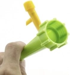 Een eenvoudige en betrouwbare oplossing om planten van het nodige vocht te voorzien zonder dagelijks water te geven. Schroef de zelfwaterende punt op een standaard PET-fles, steek hem in het substraat en stel met de kraan de druppelstroom in. Het water stroomt rechtstreeks naar de wortels, waardoor je tijd en water bespaart en overbewatering voorkomt.