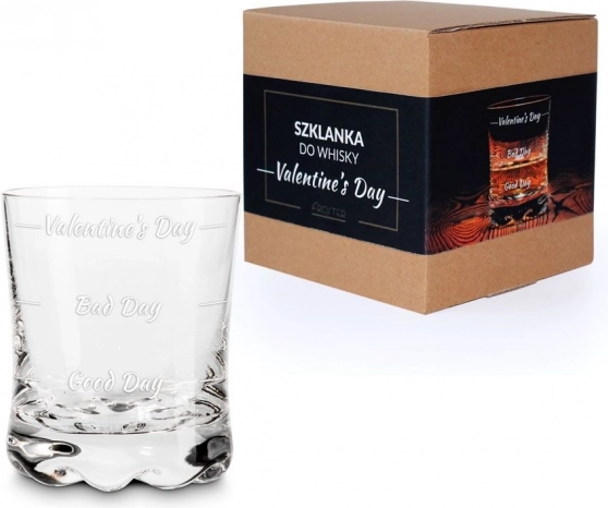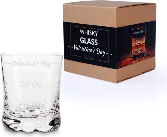Het whiskyglas voor Valentijn is een geweldig cadeau voor mensen met gevoel voor humor die dagelijks comfort willen genieten. Dankzij de drie vulniveaus - "Goede dag", "Slechte dag" en "Valentijn" - kunt u op een grappige manier de hoeveelheid van uw favoriete drankje aanpassen aan uw stemming.
