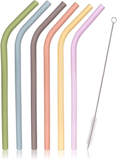 Deze set bevat zes siliconen rietjes in pasteltinten met een meegeleverd borsteltje voor eenvoudig onderhoud.