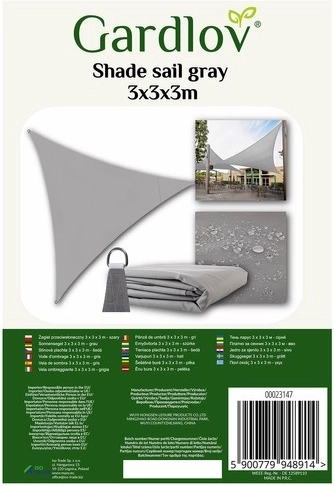 Met de driehoekige zonnedoek van 3x3x3m in grijze kleur creëert u overal buiten een prettige schaduwplek. Het doek is veelzijdig te gebruiken - u kunt het boven een terras, in de tuin of op de camping installeren. Dankzij de speciale waterbestendige laag is het onderhoudsvriendelijk en bestand tegen vocht en schimmel.