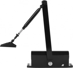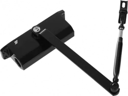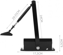 Zwarte deurdranger Malatec is ideaal voor het beveiligen van deuren in uw woning of kantoor. Ontworpen voor deuren met een gewicht tussen 40-60 kg, automatiseert dit mechanische en hydraulische systeem het sluitproces van de deur en voorkomt ongewenst dichtslaan.