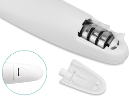 De ergonomisch gevormde handgreep en het lichte ontwerp zorgen voor comfortabel, langdurig gebruik. Voeding met gangbare LR44-batterijen maakt het mogelijk de loep altijd bij de hand te hebben – thuis, in de werkplaats en onderweg.