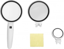 Deze multifunctionele loep combineert sterke vergroting met gebruiksgemak. Dankzij de twee ingebouwde LED’s biedt zij een gelijkmatige verlichting van het object, ideaal voor het controleren van munten, postzegels, sieraden en voor het lezen van kleine lettertjes. De verwisselbare lenzen pas je eenvoudig aan de specifieke taak aan.