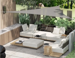 Creëer een aangename schaduwzone om te relaxen en samen te komen. De driehoekige vorm in modern grijs past bij de meeste buitenruimtes en dankzij de waterafstotende afwerking en UV-bescherming zorgt het ook op warme dagen voor comfort. Verstevigde naden, robuuste D-ringen en sterke hoeken bieden een lange levensduur en stabiliteit bij correct opspannen.