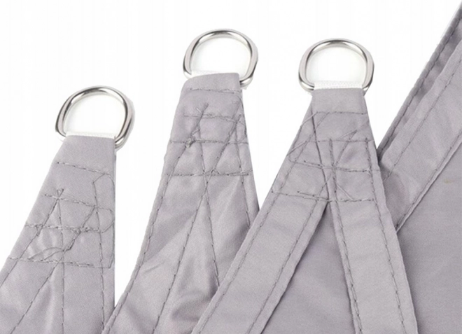 Metalen D-ringen in de hoeken en 4 montagetouwen in de set maken montage tussen muren, palen of bomen eenvoudig. Blijft stabiel, ook bij wisselvallig weer.