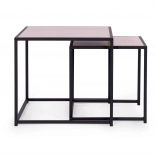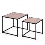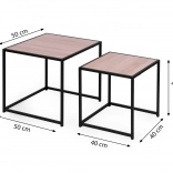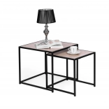 Set van twee salontafels in modern loft design ideaal voor woonkamer, thuiskantoor of leeshoek. Deze tafels bieden een stabiele en duurzame constructie met een poedergecoat metalen frame en bladen van gelamineerd plaatmateriaal.