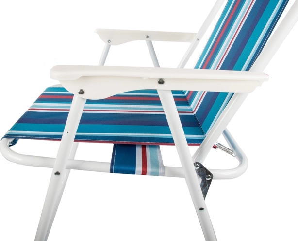 Deze opvouwbare strandstoel combineert een laag gewicht, eenvoudig dragen en beproefd comfort. Het poedergecoate stalen frame zorgt voor stabiliteit, terwijl de slijtvaste stof van zitting en rugleuning prettig aanvoelt en gemakkelijk te reinigen is. Comfortabele armleuningen ondersteunen de ontspanning, ook bij langer zitten.