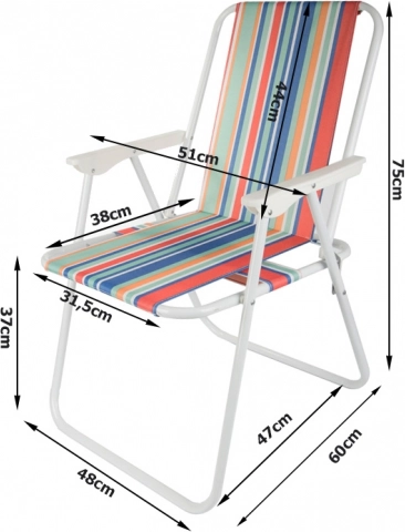 De stoel klap je zonder gereedschap uit – gewoon openen en het comfortabele zitje met armleuningen is klaar voor gebruik. De veelzijdige gestreepte look geeft een zomerse sfeer aan je kamperen, vissen, picknick of ontspanning op het balkon.