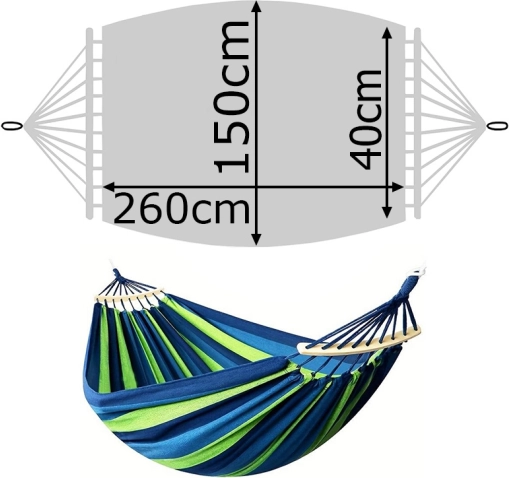 Dankzij het compacte formaat na oprollen kan de hangmat gemakkelijk worden vervoerd en opgeborgen, zelfs in kleinere ruimtes.