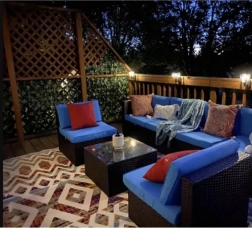 De combinatie van polyester en PP zorgt voor een lange levensduur en weerstand tegen weersinvloeden op balkons, terrassen en in tuinen.