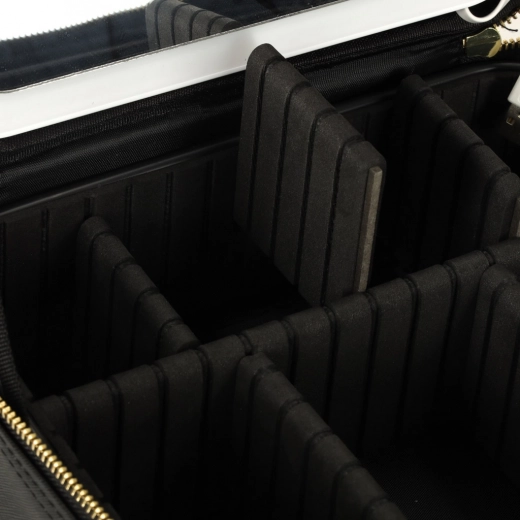 - Maximale organisatie: variabele compartimenten en vakken voor cosmetica, kwasten en kleine accessoires.