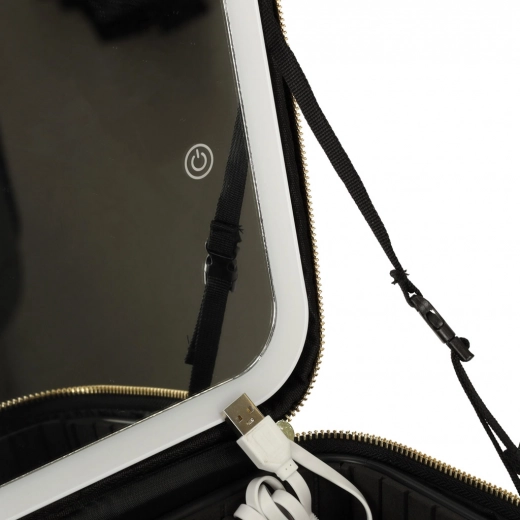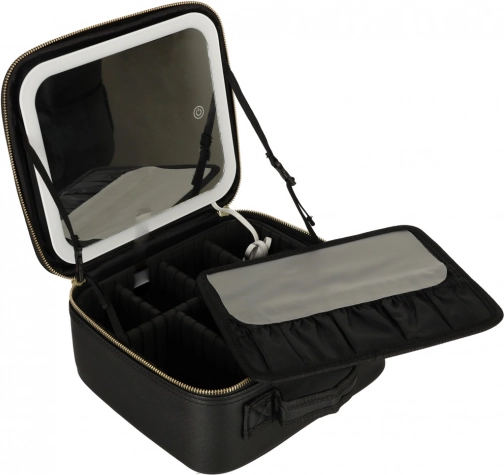 De elegante zwarte make-up koffer houdt je uitrusting thuis én onderweg perfect overzichtelijk. Binnenin vind je verstelbare verdelers, een vak voor kwasten of lipsticks en duurzame bekleding die de inhoud beschermt. De ingebouwde LED-spiegel met drie lichtstanden en een touchsensor zorgt voor precieze make-up overal.