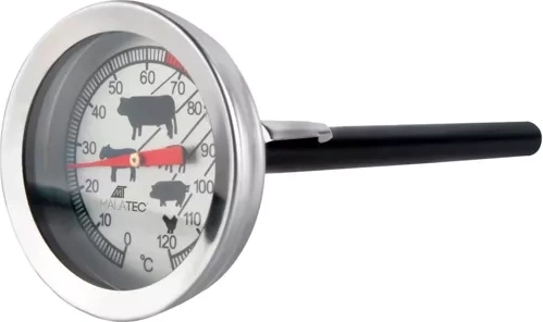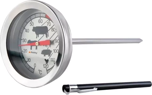 De thermometer bevat symbolen voor optimale temperaturen van verschillende vleessoorten en heeft een goed leesbare wijzerplaat.