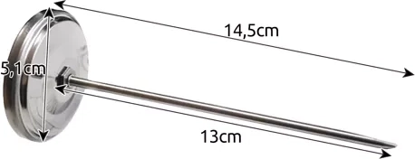 De thermometer is ontworpen om te voldoen aan de behoeften van zowel thuiskoks als professionals. Met een dunne sondespies die gemakkelijk het vlees binnendringt, wordt beschadiging van het gerecht geminimaliseerd. Ideaal voor het controleren van de kerntemperatuur van grote stukken vlees zoals ham of spek.