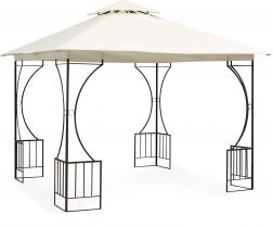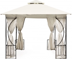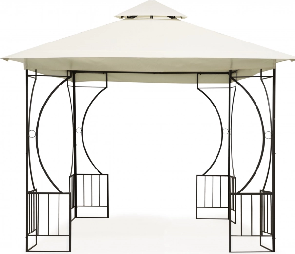 Het frame van gepoedercoat staal zorgt voor stabiliteit en een lange levensduur. Decoratieve details geven het paviljoen een elegante uitstraling in elke tuin.
