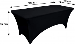 Ideaal voor sweet tables op bruiloften, catering, beurspresentaties en zakelijke meetings. De hoes is duurzaam, wasbaar en snel klaar voor gebruik – het aanbrengen kost slechts enkele minuten en kan zonder hulp.