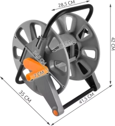 Uitgerust met centrale aansluiting voor snelle koppelingen en praktisch handvat. Lichte constructie zorgt voor gemakkelijke verplaatsingen. Dankzij deze trolley heeft u altijd orde in de tuin en is de slang beschermd tegen knikken.
