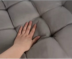 Speciale gerimpelde sectie bij de rugleuning en bevestigingskoorden zorgen ervoor dat het kussen goed op zijn plaats blijft.