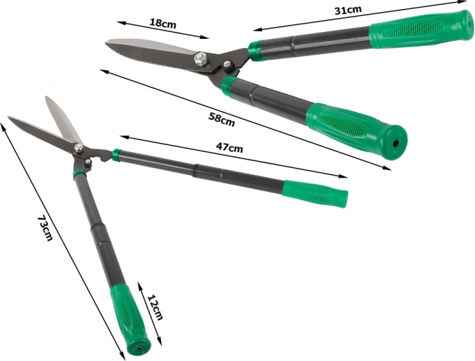 Telescopische tuinschaar van hoogwaardig staal zorgt voor een schone en rechte snede bij het onderhoud van hagen, sierstruiken en jonge takken. Dankzij de verlengbare handgrepen bereikt u eenvoudig hogere delen zonder ladder en behoudt u maximale controle en precisie.