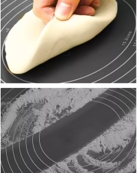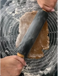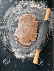 Het siliconen oppervlak minimaliseert kleven, waardoor bestuiven met bloem niet nodig is. De houten handgrepen van de deegroller zorgen voor een zekere en comfortabele grip.