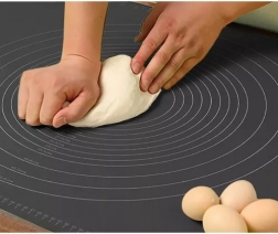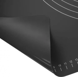 De RUHHY-set combineert een hoogwaardige siliconen bakmat met nauwkeurige cirkel- en lijnschaalverdelingen en een deegroller met siliconen oppervlak en houten handgrepen. De mat hecht stevig aan het werkblad, schuift niet en dankzij het antiaanbakoppervlak blijft het deeg niet plakken – zonder onnodig te bestuiven met bloem. Het royale formaat 70 × 50 cm biedt voldoende ruimte voor pizza, koekjes, peperkoekjes en gistdegen.