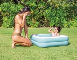 Maak kinderen blij met een eigen zwembadje dat je in enkele minuten opzet. De vierkante constructie met hogere rand is stabiel en comfortabel, terwijl de opblaasbare bodem schokken dempt en het zit- en speelcomfort verhoogt. Dankzij het compacte formaat is het badje ideaal voor peuters en kleuters.