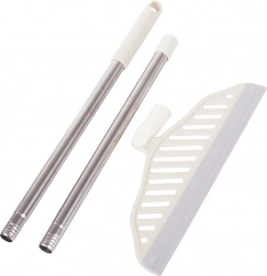 De brede kop met flexibele rubberen strip sluit perfect aan op het oppervlak en voert water effectief af van tegels, glas en spiegels.