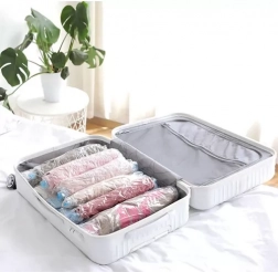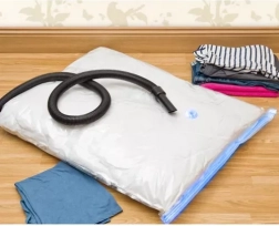 De set vacuümzakken helpt je kledingkast, beddengoed en kindertekstil efficiënt te organiseren. Dankzij de luchtdichte sluiting en het ventiel voor aansluiting op de stofzuiger comprimeer je eenvoudig volumineuze stukken en maak je waardevolle ruimte vrij in kasten, onder het bed of in opbergboxen.