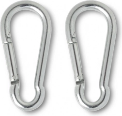 De verpakking bevat twee bevestigingskoorden en twee metalen karabijnhaken voor eenvoudige installatie.