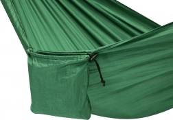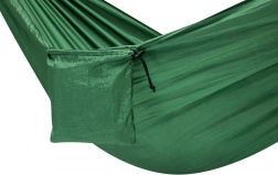 De hangmat is gemakkelijk in zijn bijgevoegde hoes te verpakken en is uitgerust met een zijvakje waarin u kleine spullen zoals een telefoon kunt opbergen. Hij is niet alleen handig tijdens kamperen, maar ook in de tuin of op het terras.
