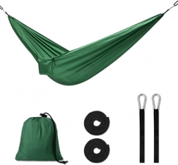 Deze hangmat, gemaakt van duurzaam nylon, biedt de ideale oplossing voor degenen die op zoek zijn naar een ontspannen slaap onder de open hemel. Met een draagvermogen tot 120 kg kan hij de hele nacht comfortabele ondersteuning bieden.