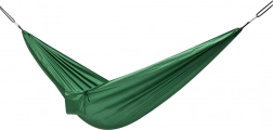 De hangmat is licht en neemt, eenmaal opgevouwen, weinig ruimte in beslag, zodat hij gemakkelijk in een rugzak past.