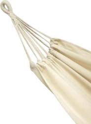 Stevige constructie: Door het gebruik van hoogwaardige katoen en polyester is de hangmat uiterst duurzaam en ondersteunt hij tot 120 kg. Na het opvouwen neemt hij weinig ruimte in beslag en kan hij gemakkelijk worden opgeborgen in de bijgevoegde tas.