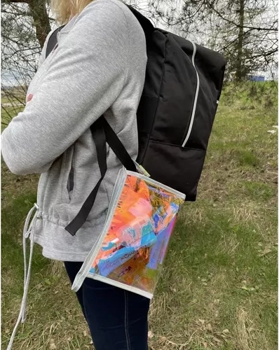In de verpakking vind je ook een transparante cosmeticatas met rits – ideaal voor vloeistoffen en kleine spullen. Dankzij het transparante PVC vind je snel wat je nodig hebt en is de inhoud duidelijk zichtbaar tijdens de controle. De tas kan bovendien eenvoudig direct aan de rugzak worden bevestigd.