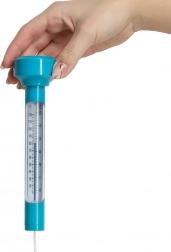 De thermometer is gemaakt van duurzaam plastic en heeft een duidelijke schaal in Celsius en Fahrenheit. Met het meegeleverde koord bevestig je hem eenvoudig aan een ladder, trap of de rand van het zwembad, zodat hij niet wegdrijft.