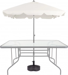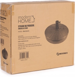 De kenmerken van de standaard omvatten twee ringen voor een veilige bevestiging van parasols met staafdiameters van 4 en 5 cm. Een verstelbare vastzetschroef garandeert dat de parasol stevig in de houder blijft. Het bevestigingsmechanisme is gemaakt van gepoedercoat metaal, wat de duurzaamheid tegen weersinvloeden verhoogt.