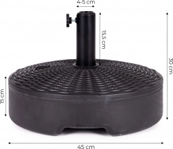 De parasolstandaard MultiGarden is ontworpen om stabiele ondersteuning te bieden voor uw parasol in de tuin of op het terras. Met een capaciteit van 22 liter en de mogelijkheid om met water te vullen, blijft de parasol stevig op zijn plek. Met een diameter van 45 cm en een hoogte van 15 cm neemt de standaard niet te veel ruimte in, maar biedt wel de nodige stabiliteit.