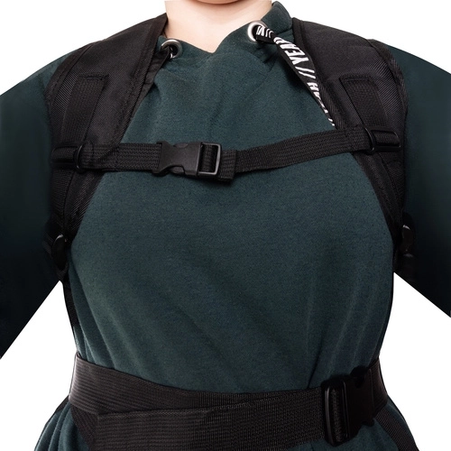 Gewatteerde schouderbanden, een verstelbare borstband en een brede heupgordel stabiliseren de rugzak en verdelen de belasting gelijkmatig.