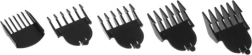 De set met vijf opsteekkammen maakt het mogelijk de gewenste lengte te kiezen en consistente resultaten te behalen bij thuis knippen en stylen.