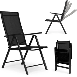 Opvouwbare stoelen met zeven standen rugleuning bieden u comfortabele rust in de tuin, op het balkon of terras. Het stalen frame garandeert stabiliteit en langdurig gebruik, en dankzij het gebruik van hoogwaardige materialen is er geen onderhoud nodig.