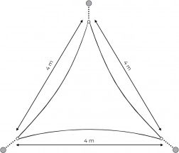 Dankzij de aanbevolen helling van circa 20° loopt water weg; diagonale spanning voorkomt doorhangen. In de set zitten 3 sterke touwen (5 m).