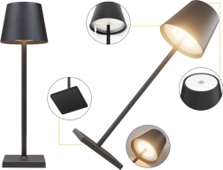 De moderne LED‑tafellamp in matzwarte uitvoering brengt aangename en functionele verlichting in elk interieur. De touchbediening bovenop biedt snelle moduswissels en helderheidsregeling volgens de actuele behoefte – van gefocust werklicht tot zacht, sfeervol licht voor de avondrust.