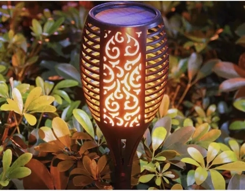De solarlampen in fakkelvorm combineren een elegant uitsnijontwerp met een LED-effect van een natuurlijke vlam, dat zorgt voor gezellige en veilige verlichting zonder open vuur. Het geïntegreerde zonnepaneel laadt overdag de ingebouwde batterij op en bij het invallen van de duisternis gaan de lampen automatisch aan.