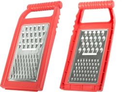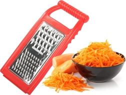 Inclusief drie soorten messen: snijden, grof raspen en fijn raspen. Dankzij de haken om op een kom of pan te steunen werk je stabiel en houd je je handen vrij. Ideaal voor groenten, fruit en kaas en na gebruik gemakkelijk af te spoelen.